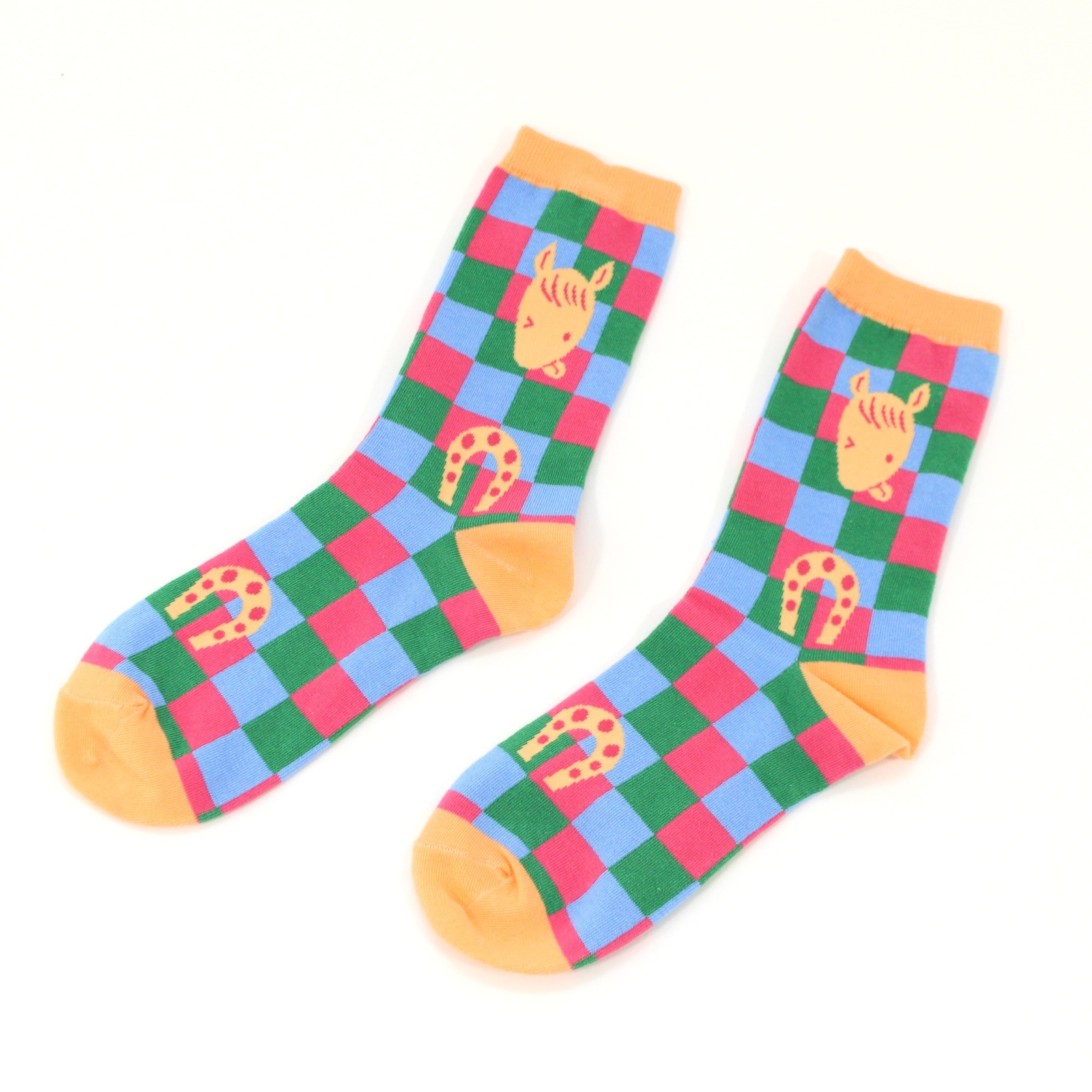 カラフルで気分が明るくなるハッピーなデザインのソックスです。
