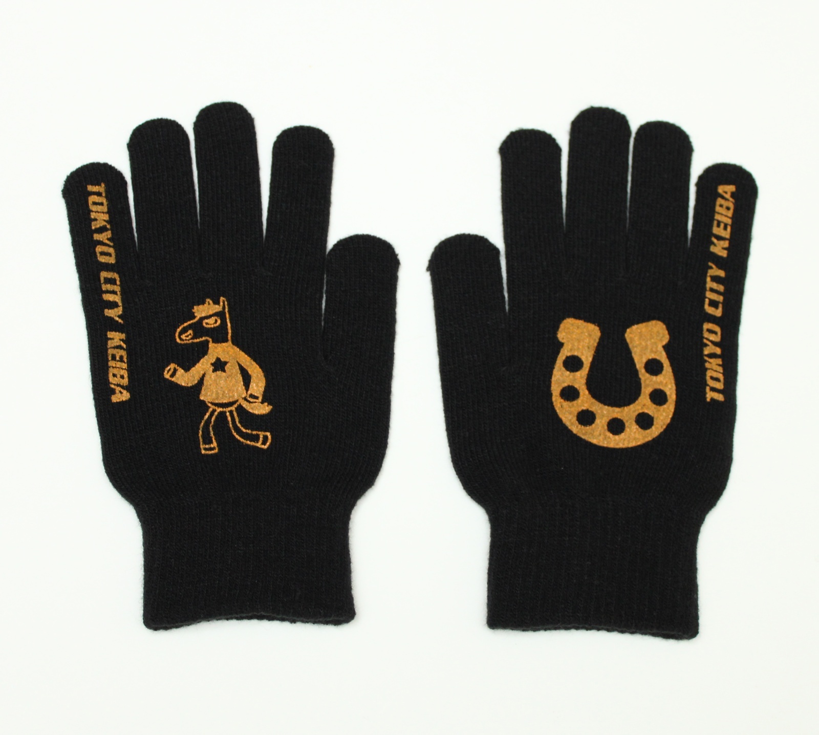 「うまたせ!」と蹄鉄デザインが遊び心たっぷりのスマホ対応手袋です。